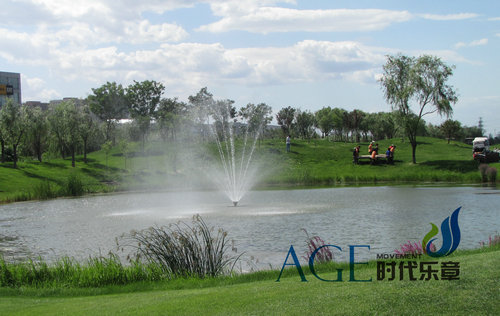 漂浮式喷泉是采用漂浮设施将喷泉安装于人工湖、河道中的一种喷泉类型,为解决喷泉日常维护及冬季防冻,在漂浮式喷泉的基础上增加升降系统,使喷泉可自由升降,冬季结冰时升降平台将喷泉设备降至冻层以下,防止设备损坏,工作时升至工作水位进行喷泉表演,需要对设备进行维护检修时升降平台上升至水面以上,使喷泉设备完全露出水面,方便对设备进行维护检修。