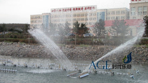漂浮式喷泉是采用漂浮设施将喷泉安装于人工湖、河道中的一种喷泉类型,为解决喷泉日常维护及冬季防冻,在漂浮式喷泉的基础上增加升降系统,使喷泉可自由升降,冬季结冰时升降平台将喷泉设备降至冻层以下,防止设备损坏,工作时升至工作水位进行喷泉表演,需要对设备进行维护检修时升降平台上升至水面以上,使喷泉设备完全露出水面,方便对设备进行维护检修。